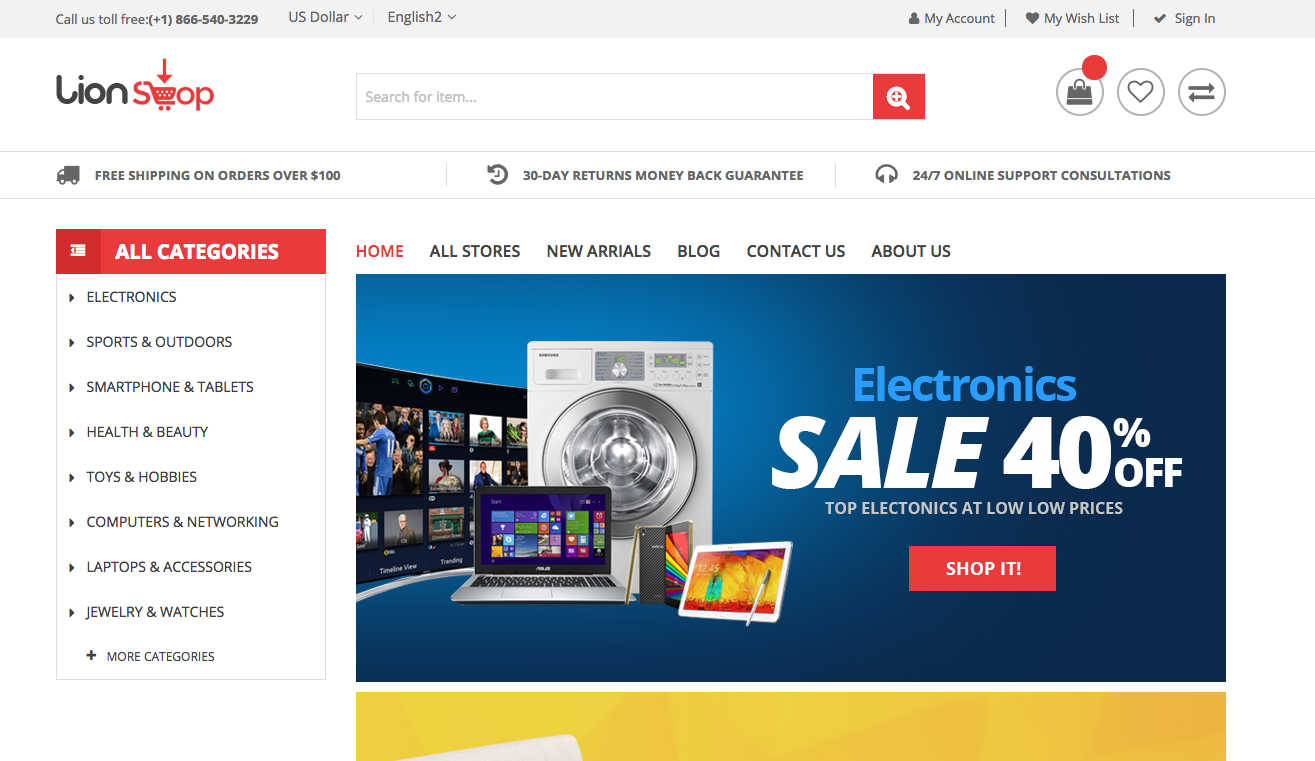 Multishop was designed to make your online store stand out. It is a sturdy premium WooCommerce Wordpress template, perfect for any eCommerce selling fashion, jewelry, gadgets, shoes, accessories, furniture, electronics, etc.